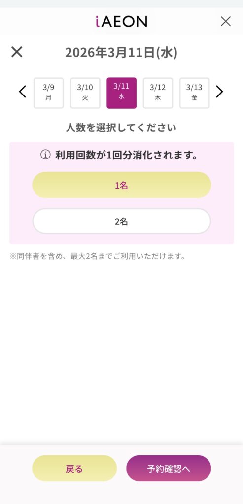 イオンラウンジの予約方法(アプリ版)